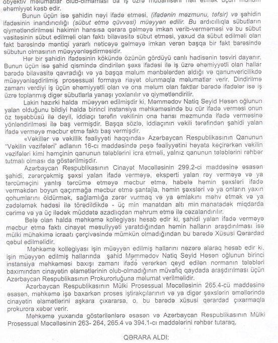 “Bu adam bizdən nə istəyir onu anlamıram. Heç bir fakta və reallığa söykənməyən iddialarla məhkəməyə müraciət edib. Əvvəlcə Nərimanov rayon, daha sonra isə Apelyasiya məhkəmələrində işə baxılıb. Hər iki məhkəmədə direktoru olduğum “Göyşay-Şərab” ASC-nin xeyrinə qərar verilib. Biz krediti onun götürdüyünə dair bütün sənədləri, səs yazılarını, və lazım olan materilları məhkəməyə təqdim etmişik. Hər iki məhkəmədə işə obyektiv baxılıb və sübuta yetirilib ki, Qurban Sadıqovun qaldırdığı iddia absurddur. Buna baxmayaraq yenə də bizə böhtan atır və 750000 manat məbləği bankdan guya bizim götürdüyümüzü iddia edir. Onu da deyim ki, işə Bakı Apellyasiya Məhkəməsində baxılarkən məhkəmə müəyyən edib ki, Natiq Məmmədova (pulu qəbul edən şəxs) Qurban Sadıqov və onun vəkili Əjdər Sarıyev tərəfindən təzyiqlər edilib. Bu adam vəkilini də bu işə alət edib. Vəkili Əjdər Sarıyev Natiq Məmmədova hədə-qorxu gələrək, məhkəmə instansiyalarında Qurban Sadıqovun xeyrinə ifadə verməsini tələb edir. Bu faktla bağlı Bakı Apellyasiya Məhkəməsinin 19 dekabr 2023-cil ii tarixli qərardadı ilə şahid Mərnmədov Natiq Seyid Həsən oglunun birinci instansiya rnəhkərnəsi baxışı zarnanı ifadə verərkən şahidi yalan ifadə verməyə məcburetmə cinayətin əlamətlərinin olub-olrnadığının müvafiq qaydada araşdırılrnası ilə bağlı Azərbaycan Respublikası Baş Prokurorluğuna xəbər verilrnəsi qərara alınıb”.Qurban Sadıqov Loğman Məmmədovun adını niyə hallandırır?