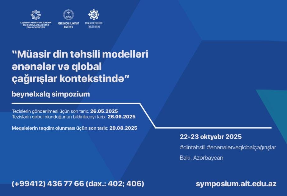 Dini Qurumlarla İş üzrə Dövlət Komitəsinin tabeliyində fəaliyyət göstərən Azərbaycan İlahiyyat İnstitutunun və Mənəvi Dəyərlərin Təbliği Fondunun birgə təşkilatçılığı ilə oktyabrın 22-23-də “Müasir din təhsili modelləri ənənələr və qlobal çağırışlar kontekstində” mövzusunda beynəlxalq simpozium keçiriləcək.