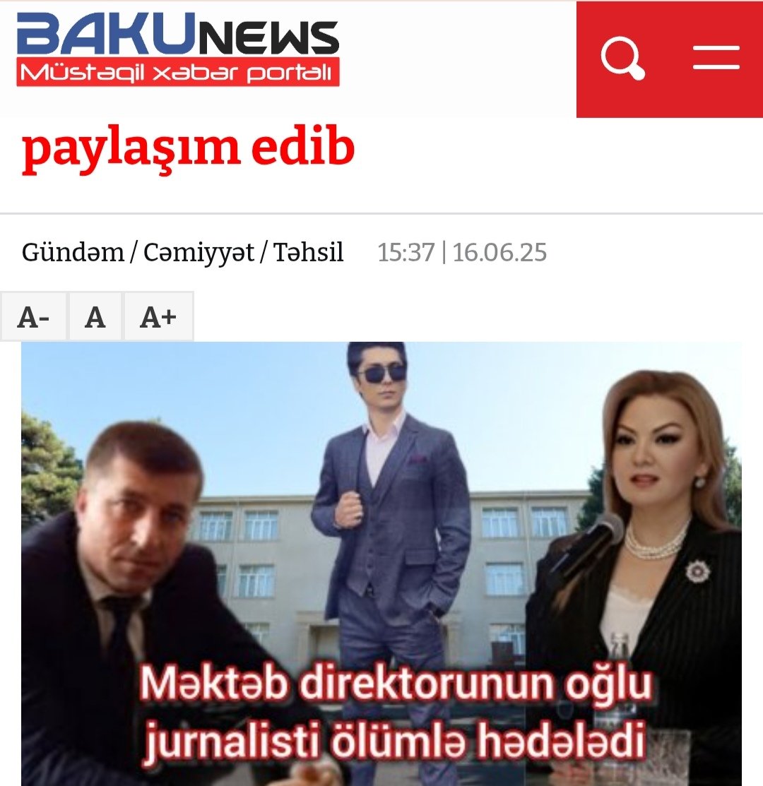 Məktəb direktorunun oğlu jurnalisti ölümlə hədələdi – Təhsil portalının rəhbəri paylaşım edib