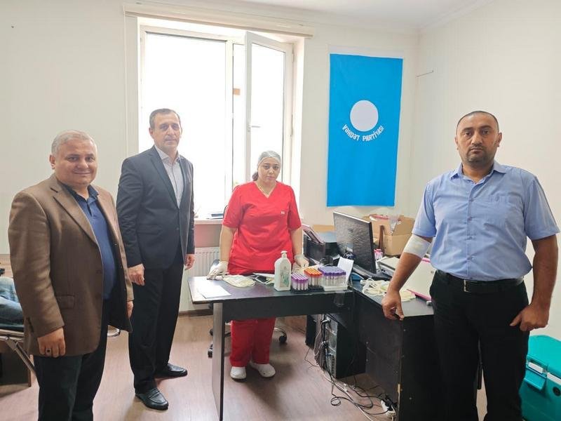 Səhiyyə Nazirliyi Respublika Qan Bankının həkimi Şahgəldiyeva Tahirə xanım, tibb bacısı Nigar xanım Allahverdiyeva, laborant Səkinə xanım Vəliyeva və Sevda xanım Rəsulova tərəfindən hər bir donorun sağlamlığı öncədən yoxlanılıb, hərtərəfli tibbi müayinədən sonra onlardan qan götürülüb.