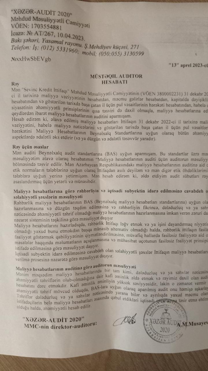 Xəzər audit 2020- MMC illik hesabatını açıqlayıb.