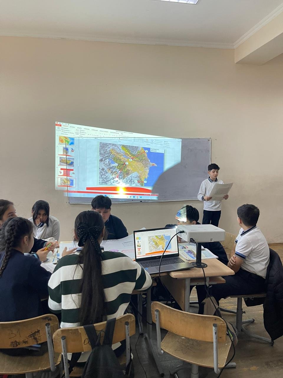 Fiziki xəritə, kontur xəritə və iş vərəqlərindən məqsədyönlü istifadə edilməsi isə mövzunun daha yaxşı mənimsənilməsinə, analiz və tətbiq bacarıqlarının formalaşmasına şərait yaratdı. Dərsin uğuru, səmərəliliyi və estetik təqdimatı göz oxşayırdı.