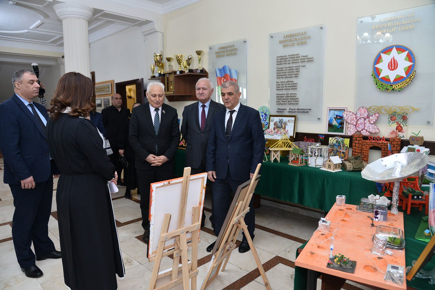 Qonaqlar əvvəlcə təhsil ocağının foyesində şagirdlərin əl işlərindən ibarət sərgiyə baxış keçirib, “Rəqəmsal bacarıqlar” layihəsi çərçivəsində informatika dərsinin tədrisi prosesini izləyiblər.