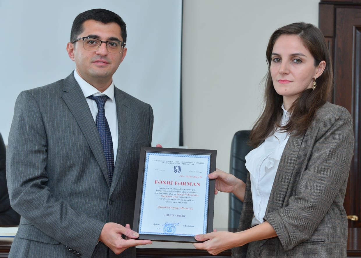 tehsilmedia.info xəbər verir ki, tədbiri giriş sözü ilə universitetin rektoru Rüfət Əzizov açaraq professor-müəllim heyətinə ən xoş arzularını çatdırdı, onlara çətin və şərəfli işlərində uğurlar arzu etdi. SDU-nun inkişafı naminə birgə və səmərəli fəaliyyətin vacibliyini qeyd edən Rüfət Əzizov ölkədə aparılan çoxşaxəli təhsil islahatlarından danışdı. Bildirdi ki, müəllim peşəsi cəmiyyətdə müqəddəs və şərəfli peşələrdən biri hesab edilir. Çünki məhz müəllim əməyinin nəticəsində cəmiyyət formalaşır, savadlı, bilikli, geniş dünyagörüşlü, nümunəvi əxlaqa malik insanlar yetişir. Belə insanlar cəmiyyəti inkişaf etdirir, ölkəni, dövləti gücləndirir.
