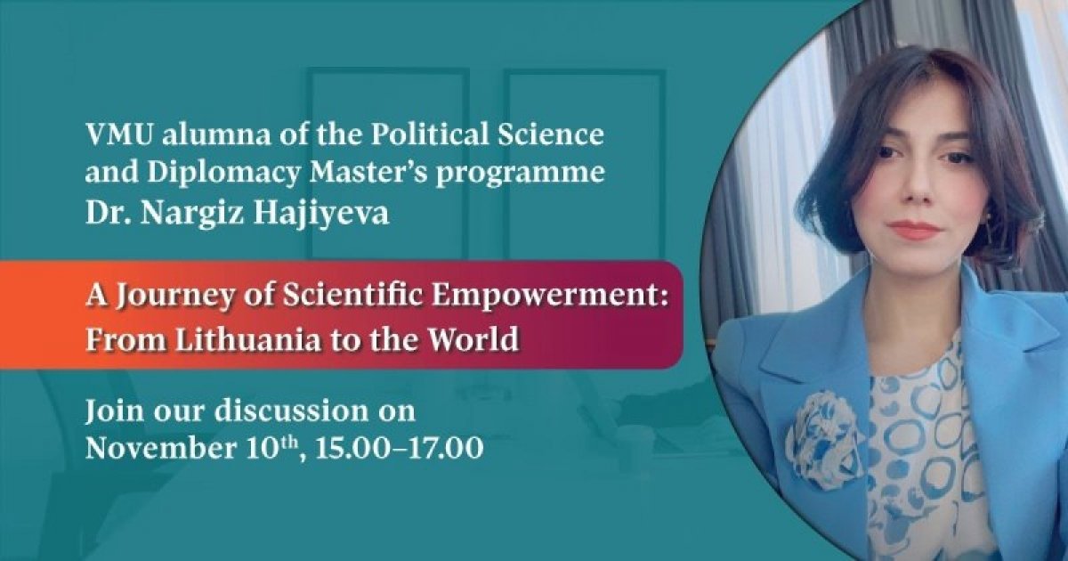 Nərgiz Hacıyeva bu il noyabrın 10-da Vitautas Magnus Universiteti və Litvanın Elm və Təhsil Nazirliyinin birgə təşkilatçılığı ilə keçiriləcək “VMU məzunlarının dayanıqlığı və optimizmi” adlı beynəlxalq məzunlar forumunda “Elmi səlahiyyətlərin yolu: Litvadan dünyaya” mövzusunda çıxış edəcək.