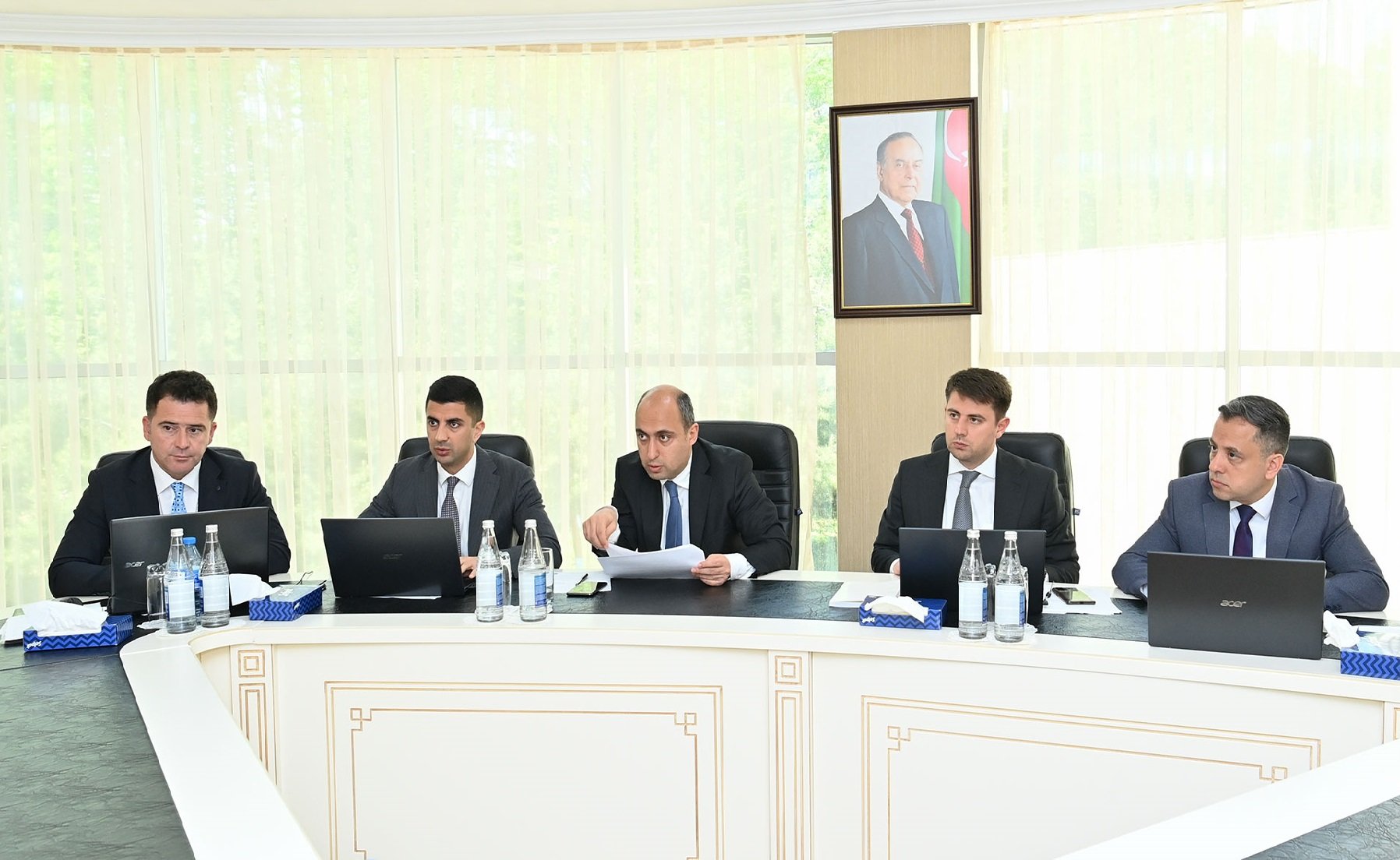 Qəbuldan əvvəl ulu öndər Heydər Əliyevin abidəsi ziyarət edilib, önünə gül dəstələri düzülüb.