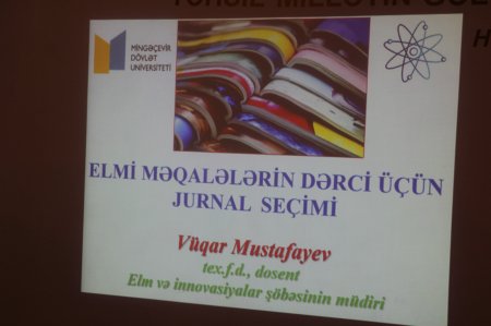 Mingəçevir Dövlət Universitetinin (MDU) Elm və innovasiyalar şöbəsinin təşkilatçılığı ilə “Elmi məqalələrin dərci üçün jurnal seçimi” adlı növbəti elmi-praktik seminar keçirilib. Seminarda MDU-nun bir qrup professor-müəllim heyəti üzvü iştirak edib.
