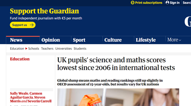 Dünya mediasında PISA 2022 tədqiqatının nəticəsi ilə bağlı əks-sədalar birmənalıdır. Onlardan bir neçəsini təqdim edirik: