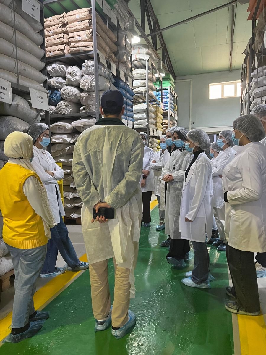 Universitetdən bildirilib ki, "tehsilmedia.info" a burada tələbələr məhsulların yığımı, xammal və yarımfabrikatların saxlanma anbarları, ilkin emal prosesi, məhsulun doldurulması, qablaşdırılması, paketlənməsi və hazır məhsulun saxlanma anbarları ilə tanış olub, avadanlıqların istehsal gücü və iş prinsipləri haqqında məlumat alıblar, eyni zamanda müəssisənin laboratoriyasında bir çox analizlər aparıblar.