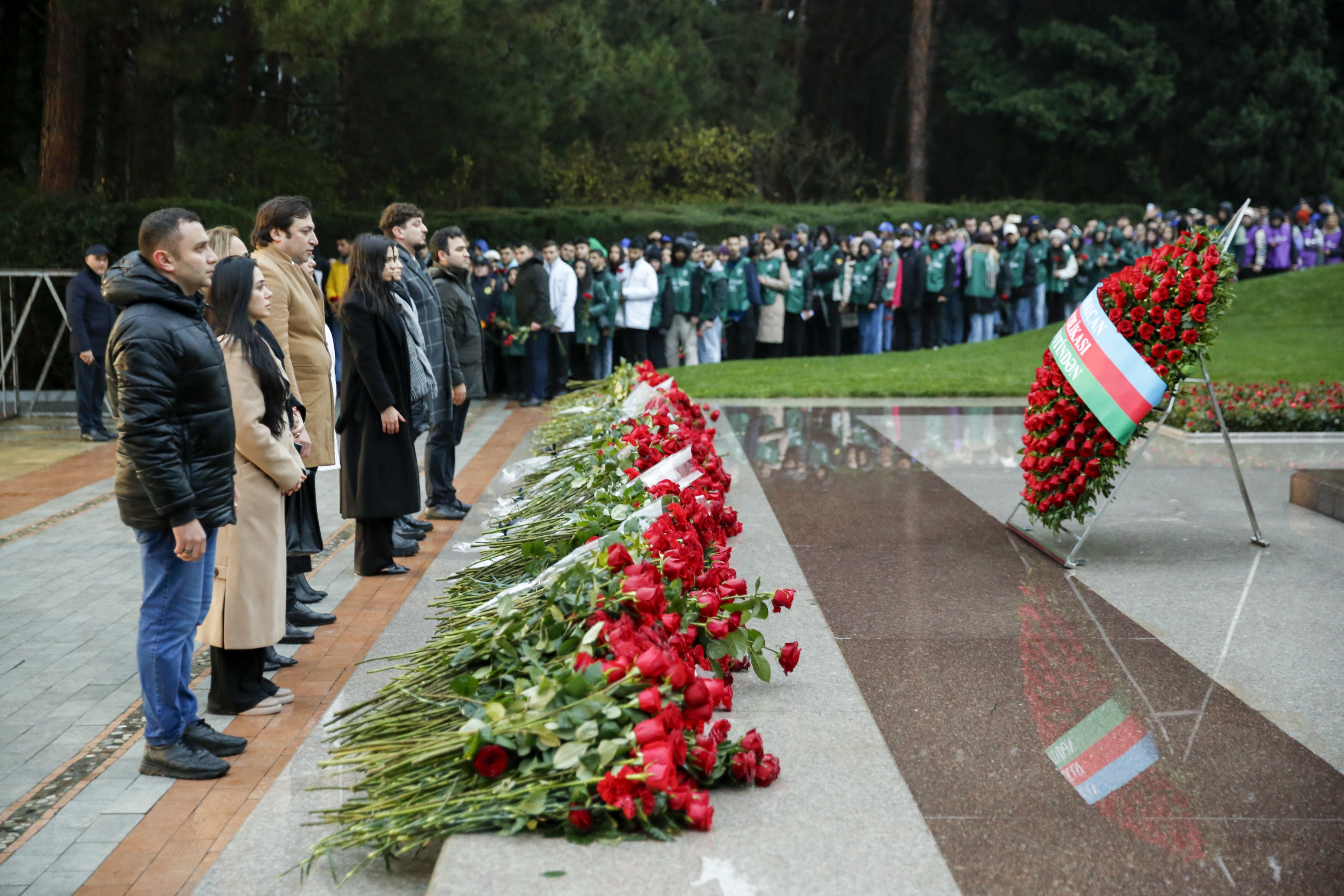 dərin hüzn və hörmətlə yad edən 1500-ə yaxın gənc könüllü Azərbaycan xalqının ürəyində əbədi yaşayacaq olan Ümummilli Liderin məzarı üzərinə çiçəklər düzüblər.
