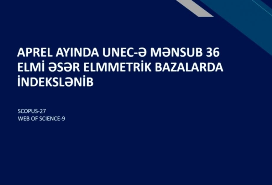 Bu ilin aprel ayı üzrə Azərbaycan Dövlət İqtisad Universitetinin (UNEC) əməkdaşlarının 36 elmi əsəri nüfuzlu elmmetrik bazalarda indesklənib.