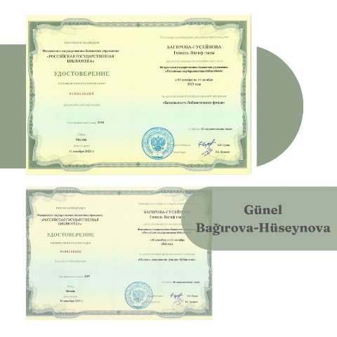 MEK-in direktor müavini dosent Şəhla Tahirqızı, elmi katib Şəbnəm Rüstəmova, Heydər Əliyev və Azərbaycan dövlətçiliyi şöbəsinin müdiri Günel Bağırova-Hüseynova, Komplektləşdirmə şöbəsinin müdiri Gülnar Məmmədova sözügedən kursları uğurla başa vuraraq sertifikatla təltif ediliblər.