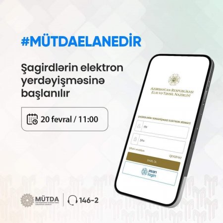 20 fevral saat 11:00-dan etibarən 2023-2024-cü tədris ilinin II yarımili üzrə şagirdlərin yerdəyişməsi prosesi aktiv olacaq.